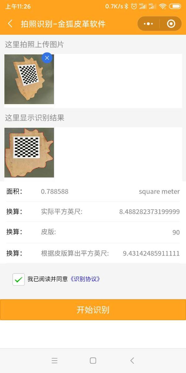 (1)皮革面积识别小程序: