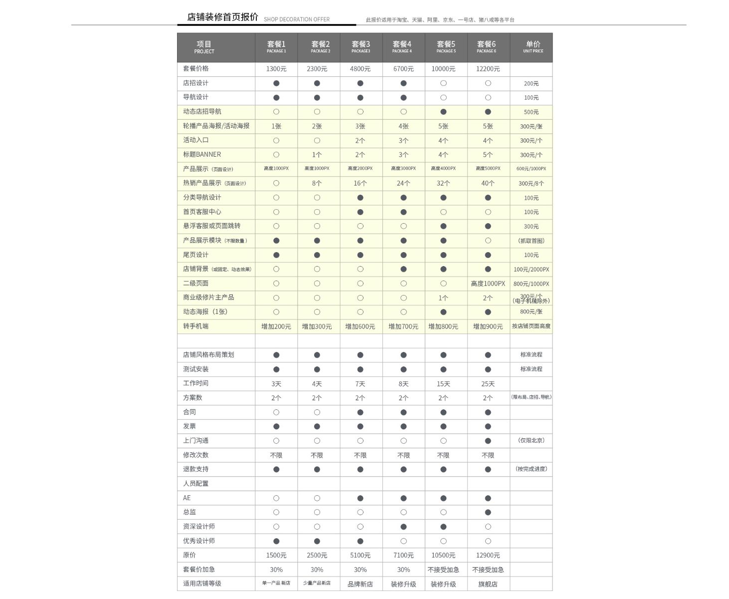 价格方案