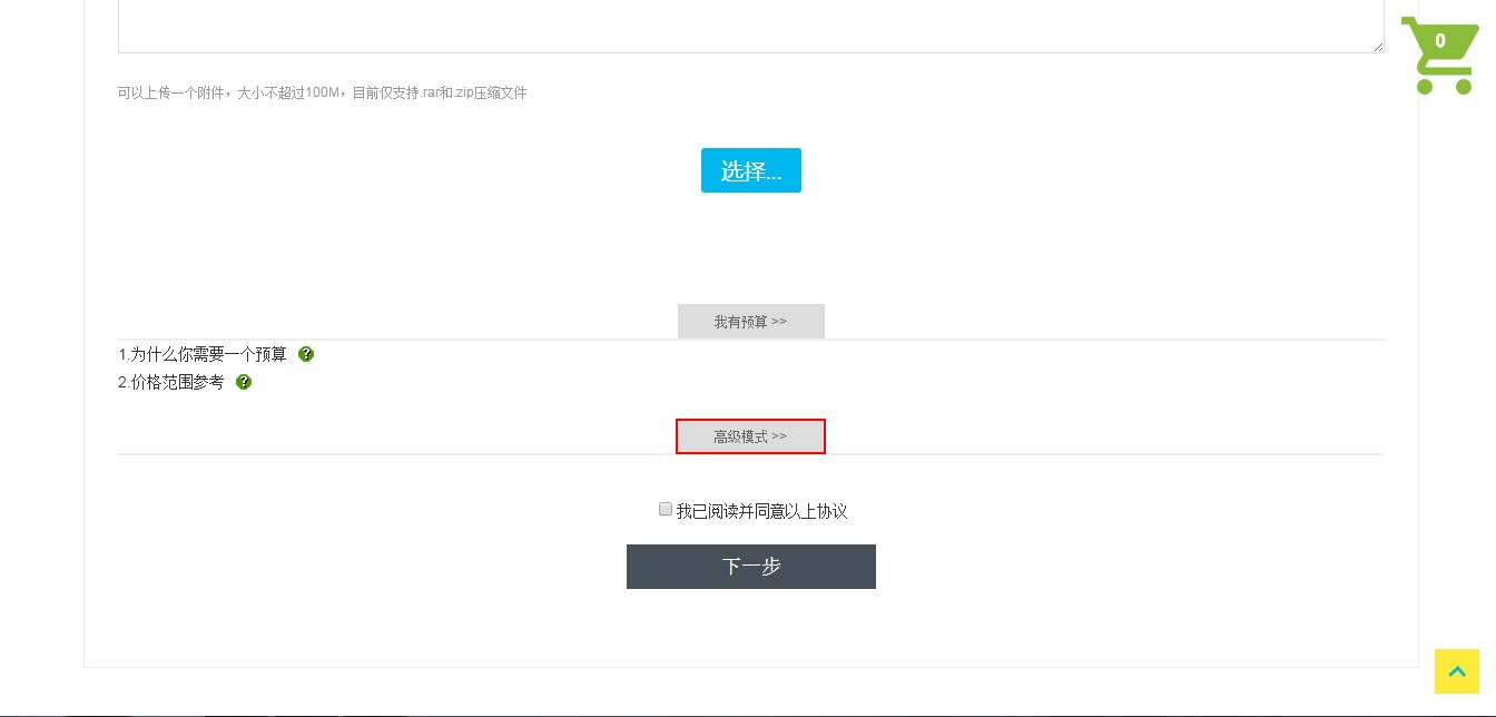 填写详细需求和图片,下一步提交项目