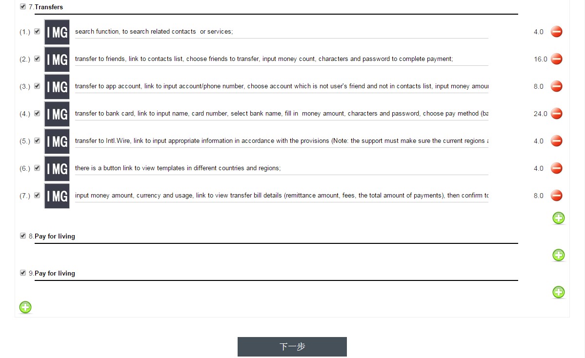 平台将项目分配给不同的技术团队,各技术团队按照P1,P2,P3,P4四个阶段,评估项目研发需要的工时以及总费用。