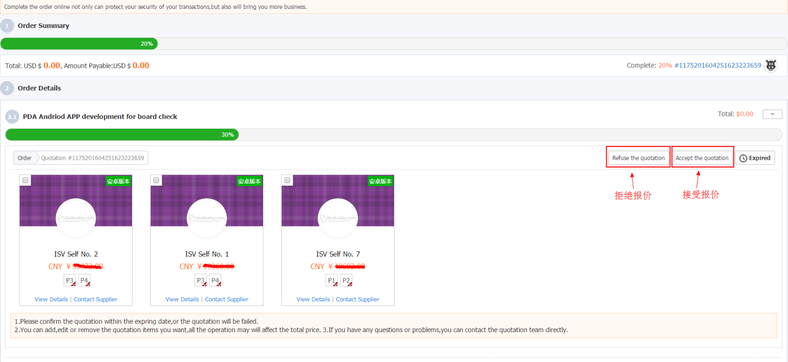 报价出来后,你可以登陆您的账号查看报价详情,确认项目功能和报价后,项目可以进入付款状态。