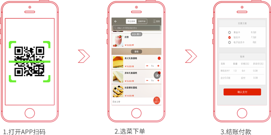 | 远程设置收银数据、随时随地查看餐厅营业报表、进行会员管理 | 自主发起红包营销、无需依靠第三方平台,将红包分享至微信朋友,扩大餐厅知名度 |