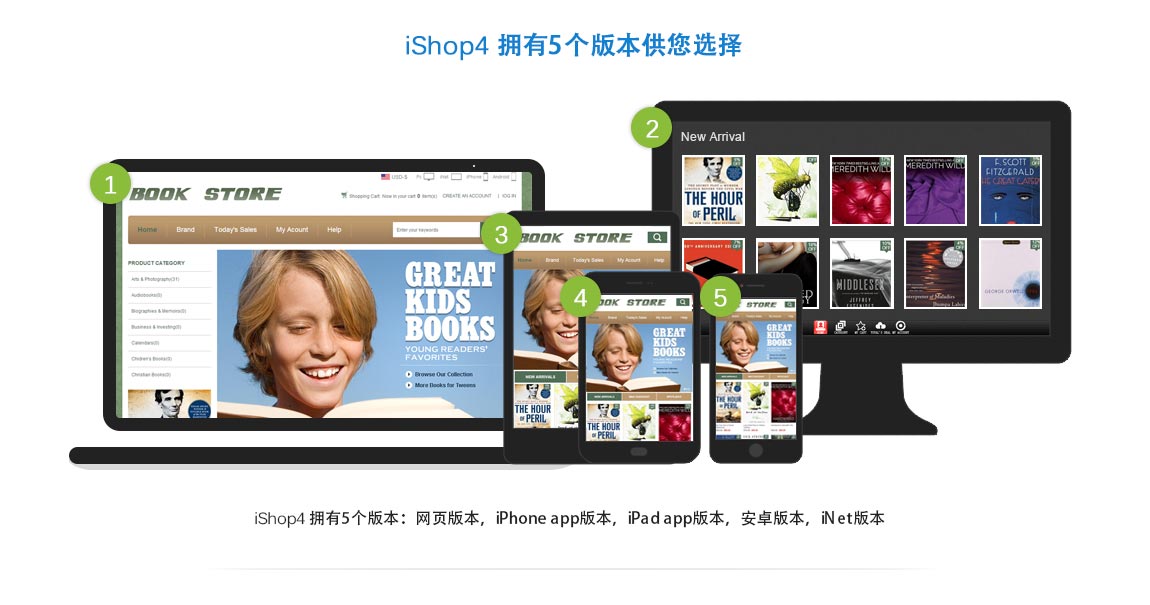 Ishop4有5个版本,即电脑,安卓,苹果(iPad,iPhone) 和iNet 版本。全方位覆盖您的客户群体。