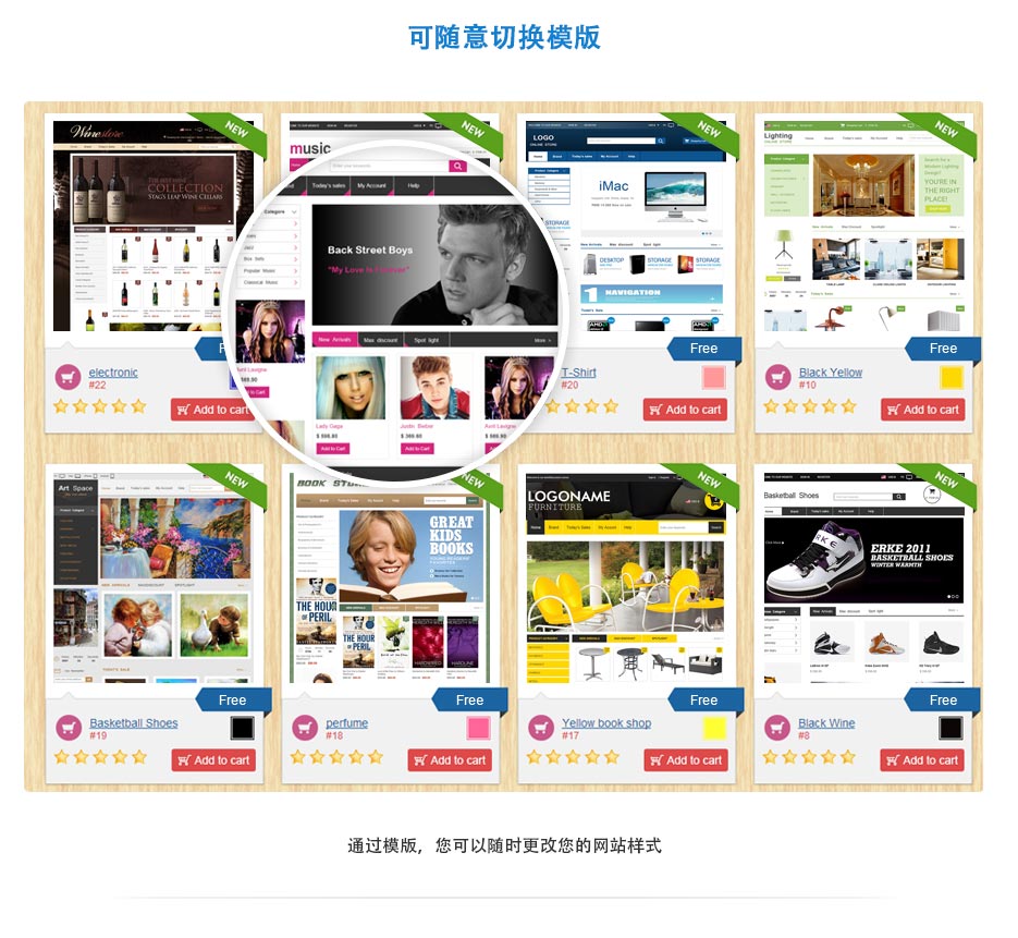 Ishop4的后台有上百种免费模板供你选择,想换就换。