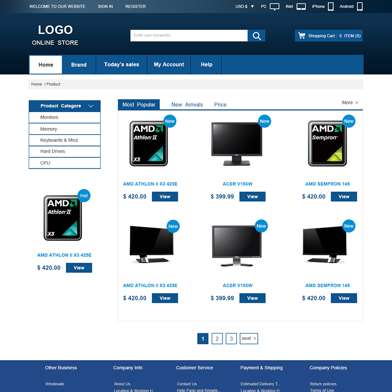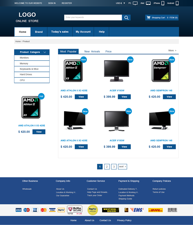 iShop4系列电子商务网站是由iShop4团队独立研发的一款产品,具有功能强大,操作简便,用户体验极佳的特点,它将会给您带来更多的客户和浏览量。在该网站中,您可以很方便的使用搜索、添加到购物车、在线支付等功能。在支付方面,我们集成了多种主流的付款方式,比如支付宝、paypal、西联等;在货币方面,我们集成了货币转换器,满足您作为跨境电商的需求;在语言方面,iShop4支持多种语言,再也不用担心国外客户看不懂网站啦。目前iShop4有5个版本,即网页版、iPhone app版、iPad app 版、安卓版、iNet,可以极大的覆盖您的客户群体。