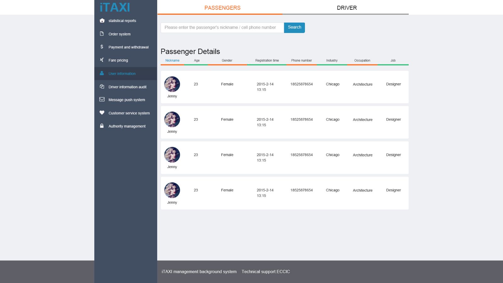 司机和乘客信息查看-乘客