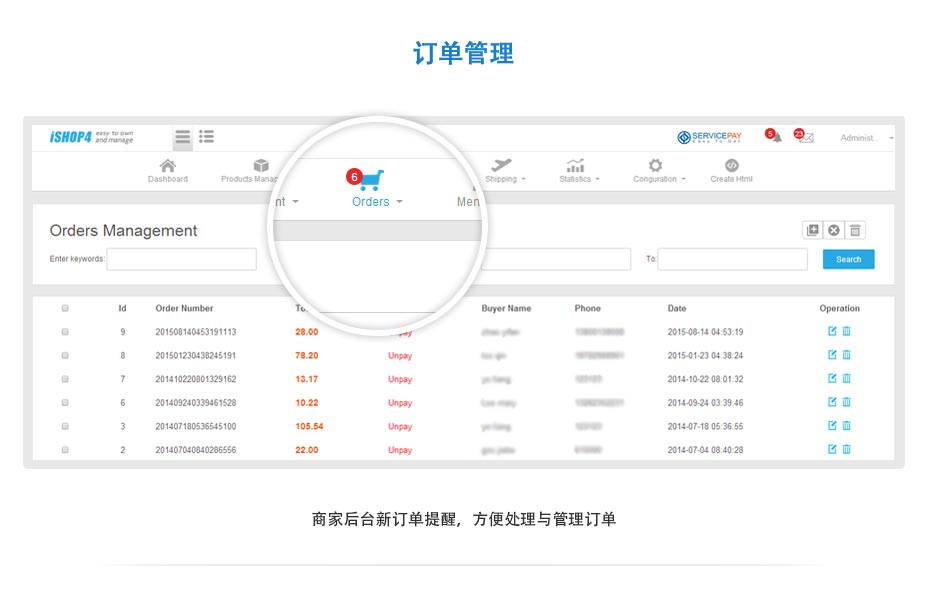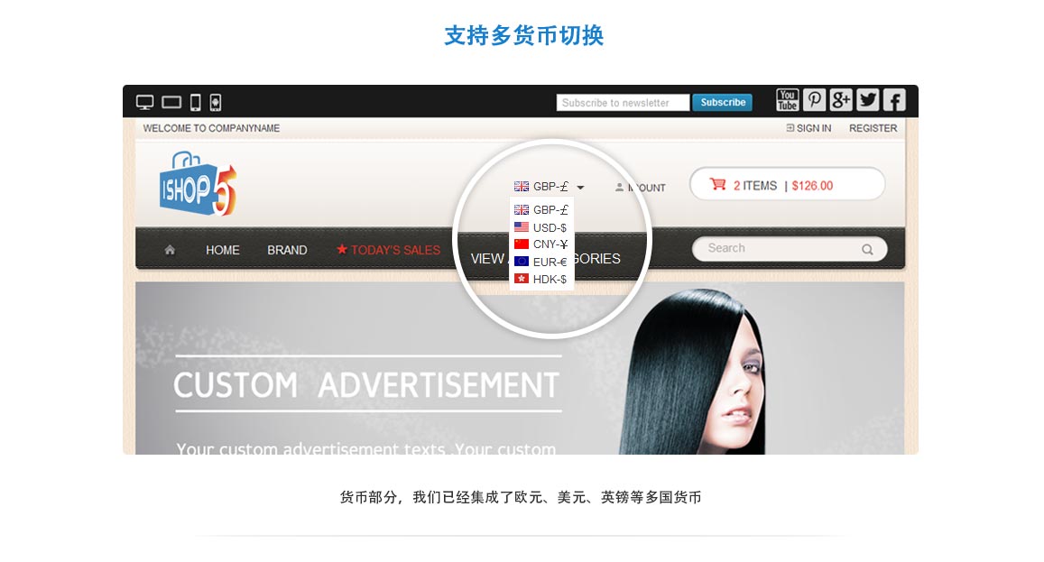 | iShop5系列电子商务网站是根据iShop4网站的雏形进行开发,但是iShop5并不是iShop4的升级版,iShop5采用了iShop4的内核,加入了当前最流行的HTML5技术,自带兼容所有手机浏览器与电脑浏览器(支持HTML5),购买我们的iShop5可以无需再购买单独的手机版本。 |