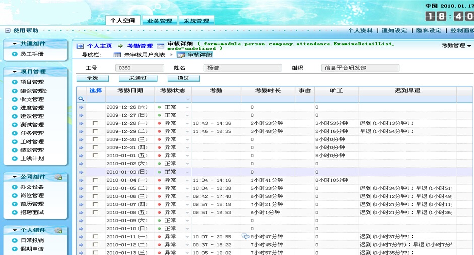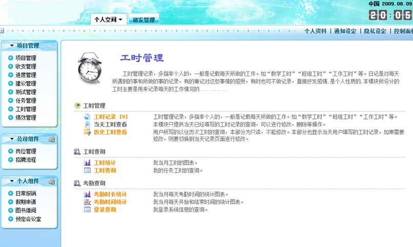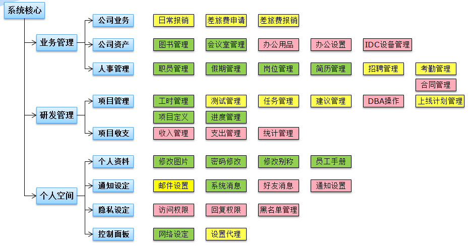 企业OA系统,基本上涉及到企业管理的方方面面,比如人员管理,组织管理,办公用品管理,差旅管理,收入支出管理,招聘管理,考勤管理,请假管理,审批管理,项目资源管理等等,功能强大,页面设计操作简单