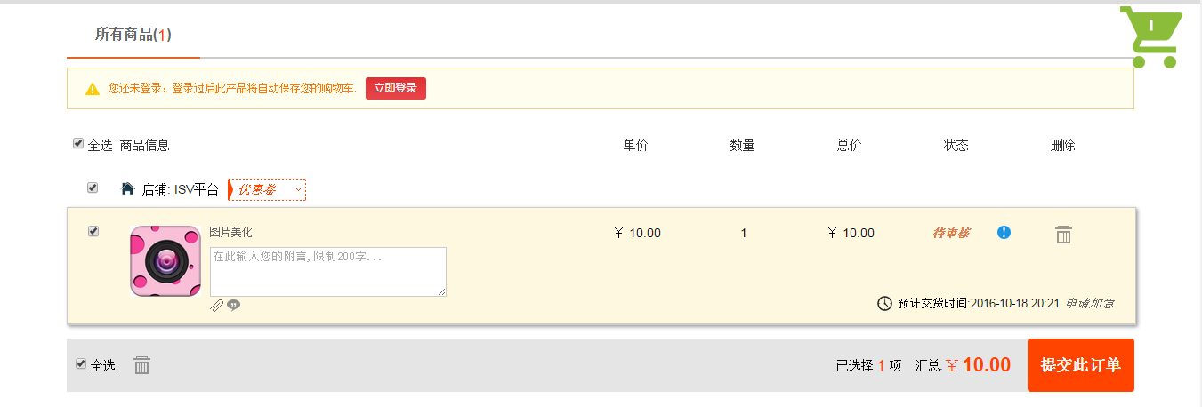 4. 订单报价出来后您可以选择“去付款”,进入付款页面。
