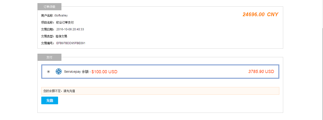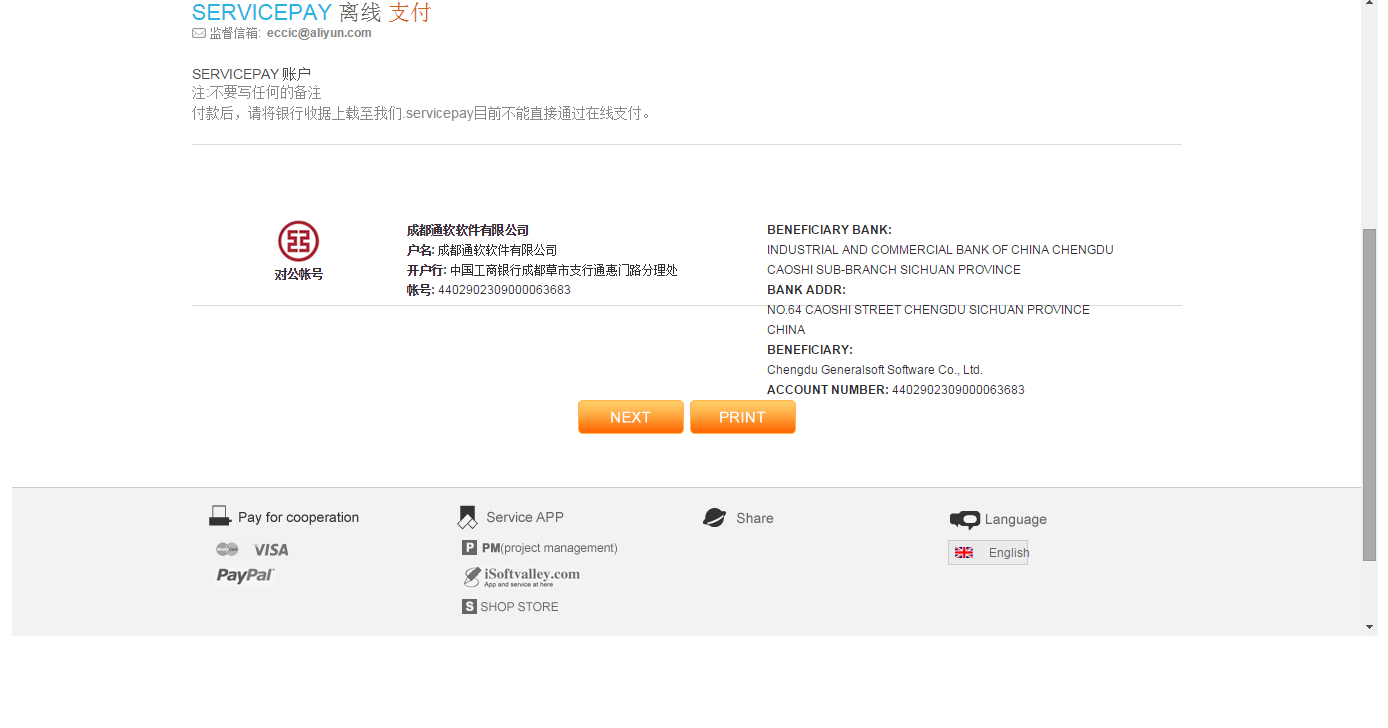 5. 在支付页面,您可以选择软宝(Servicepay)支付或者贝宝支付,输入您的软宝账号和密码完成支付。