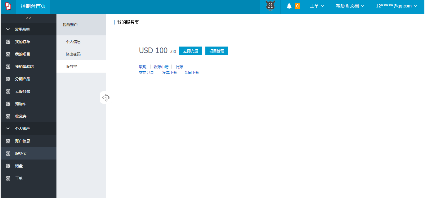 7.充值完成后,你可以在软谷>“我的服务宝”中查看账户余额。